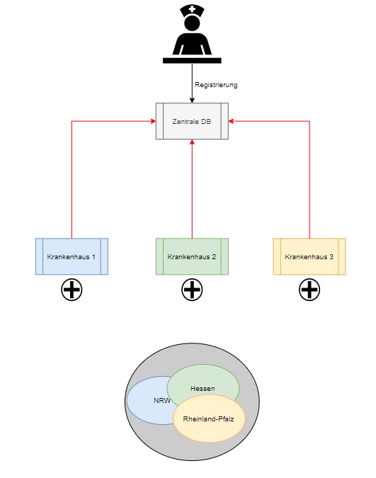 - Abbildung einer global verfügbaren Datenbank mit lokalen Zugriffen mit automatisch abrufbarer Ressourcenaktivierung durch die Krankenhäuser